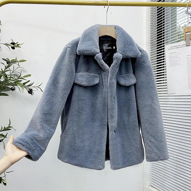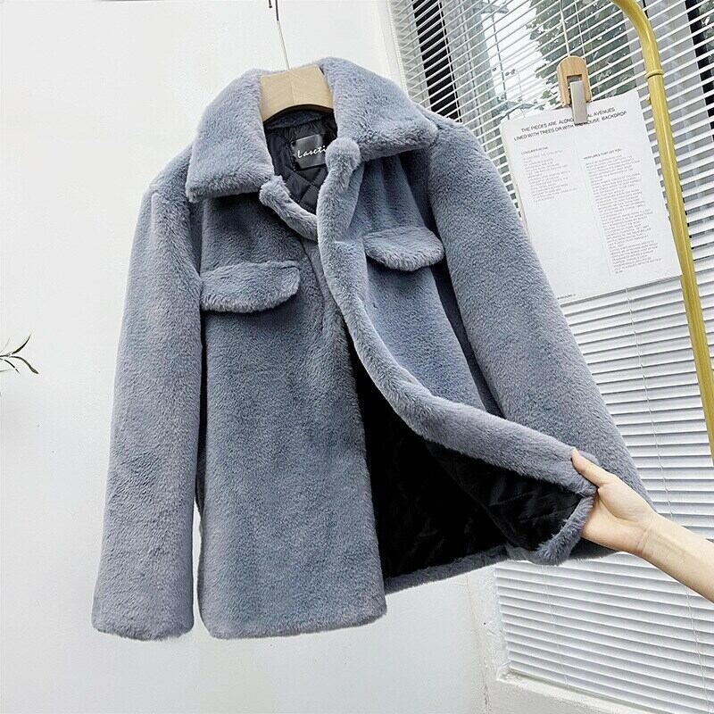 2021 冬のコートバージョンの模造毛皮のコートの女性ラペルルース厚い毛皮のコート毛皮のようなマントー fourrure ファム ウィンター 冬物 フェミニン bel87225581745 | aliel