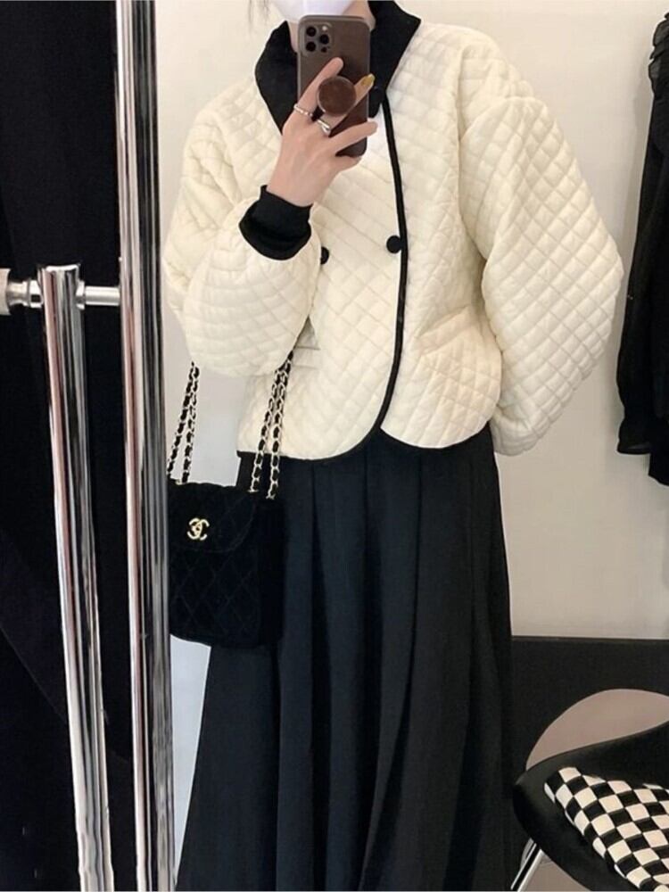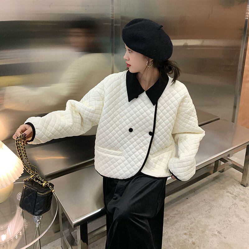 秋冬パッド入りジャケット特大女性のジャケットアーガイルコートオフィスレディ暖かい冬のパーカー オータム 秋物 ウィンター 冬物 会社 学校 通勤や通学にも bel68416817181 | aliel