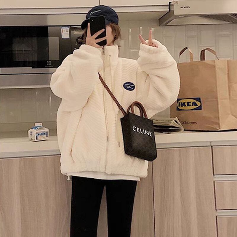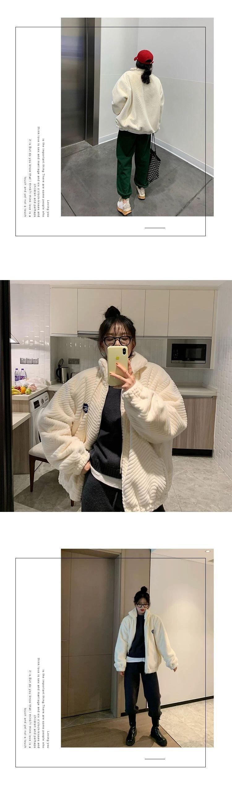 女性フェイクファーコートルーズストライプ暖かいアウターウェアジャケットソフト冬ジッパーコート куртка короткая с мехом ウィンター 冬物 bel26972516866 | aliel