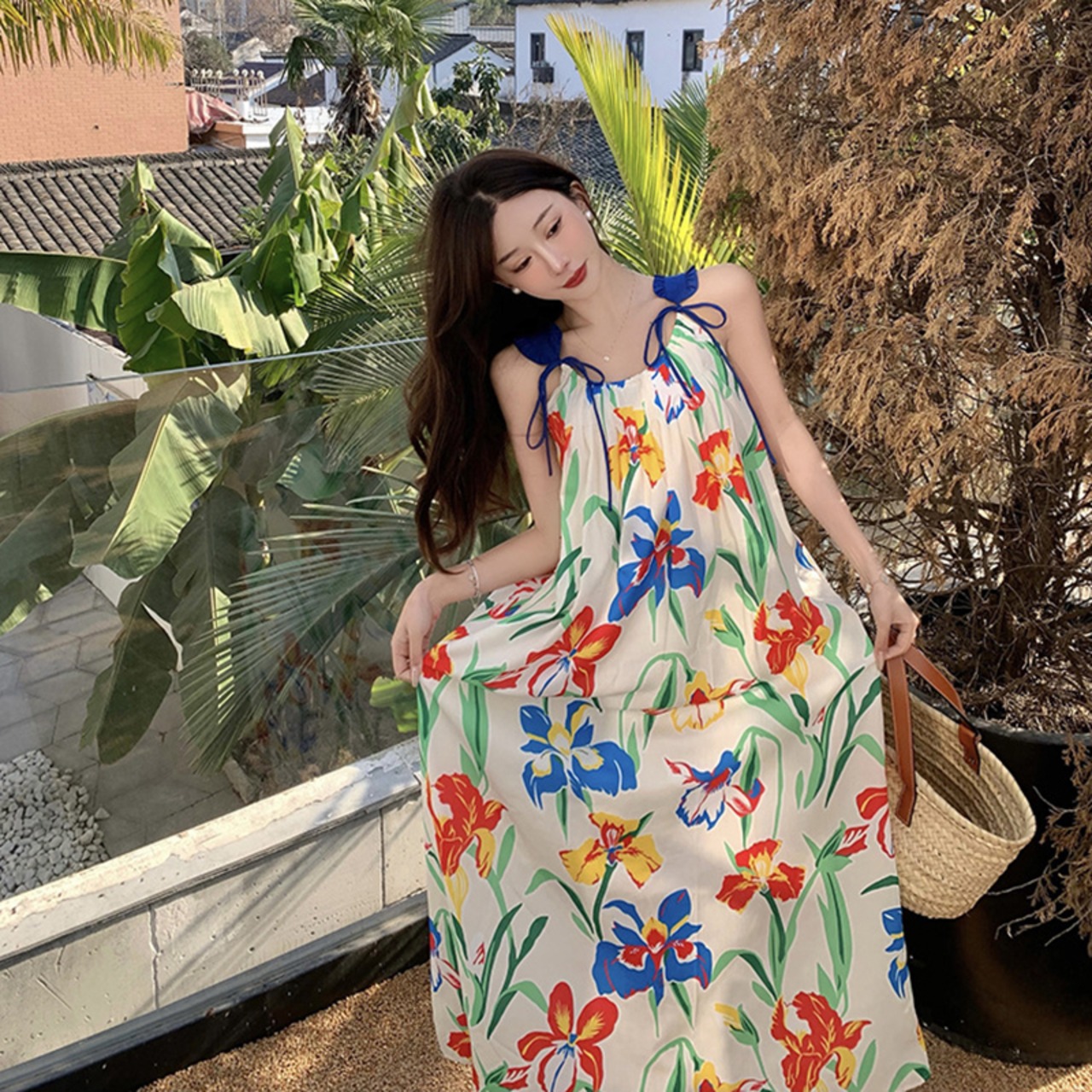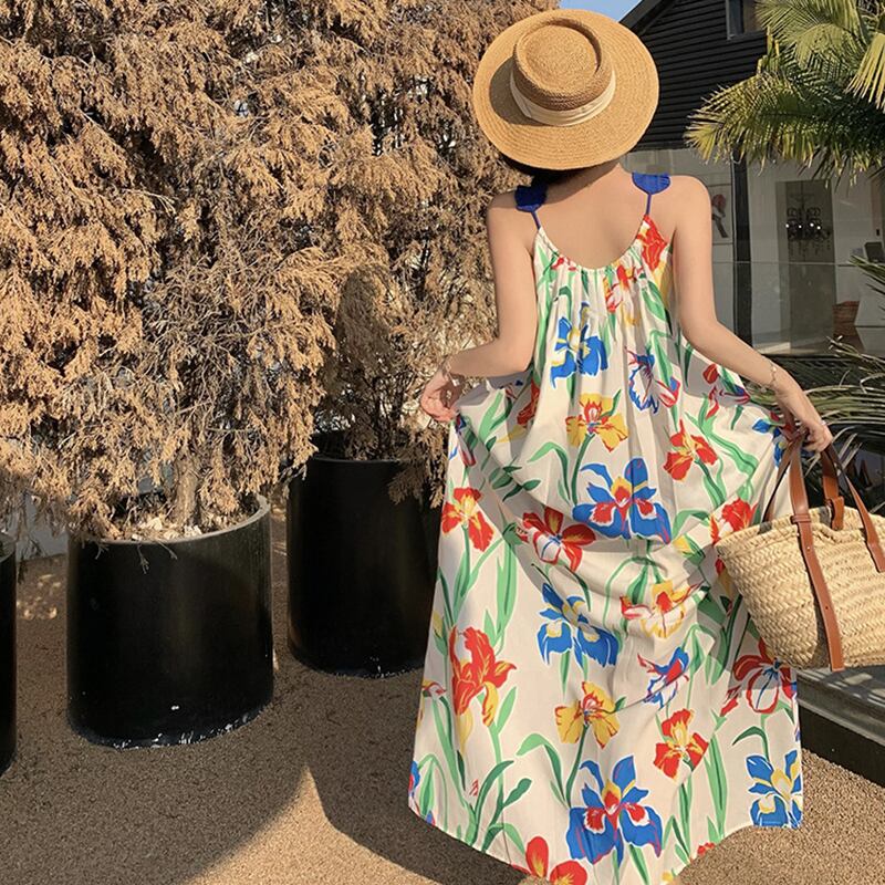 サマードレス 2022 女性のセクシーな背中の開いたプリント花ミディドレスホリデービーチ自由奔放に生きるスパゲッティストラップ Vestidos 夏物 花柄 bel54153568557 | aliel