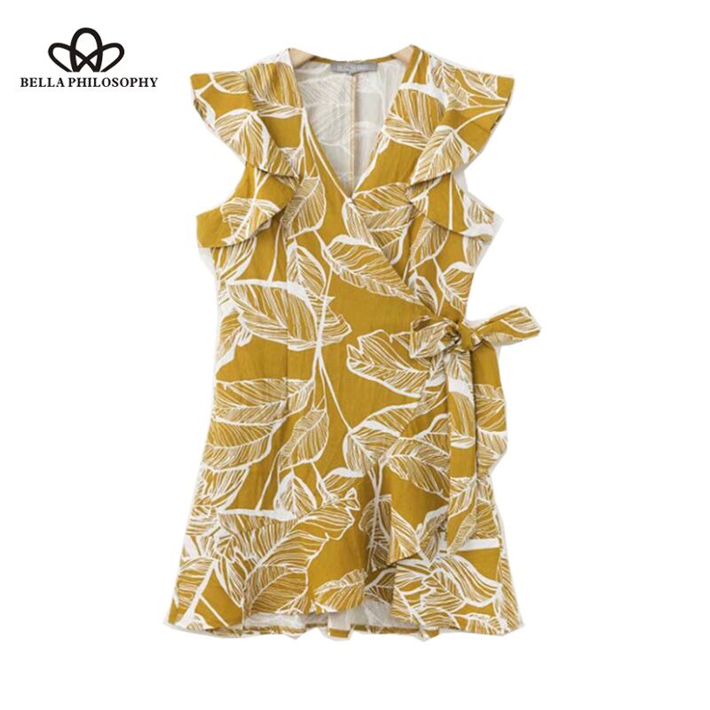 ベラ哲学 2019 夏プリントフリルドレスの女性のドレスハイウエストノースリーブの女性の vestidos カジュアルなレースアップの女性のドレス ハイウェスト ラッフル サマー 夏物 bel88288410948 | aliel