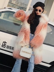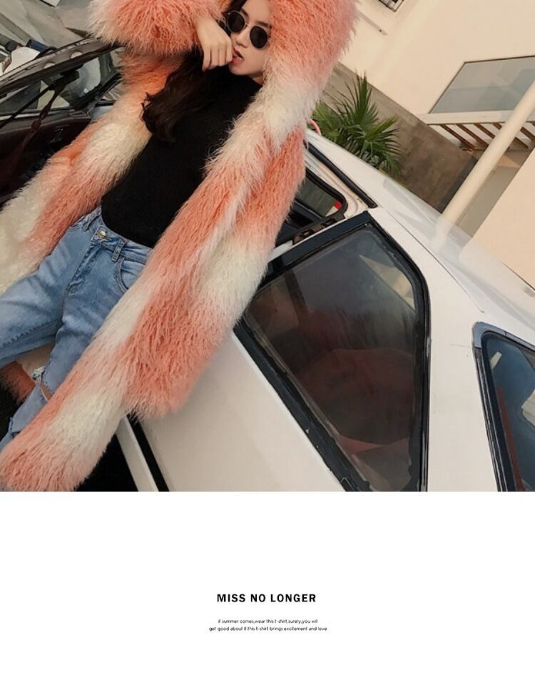 ピンクのグラデーションの模造毛皮のコート ビーチ ウールの柔らかい毛皮のコート フード付きの厚い長い秋と冬の毛皮のコート ロング オータム 秋物 ウィンター 冬物 bel23333263950