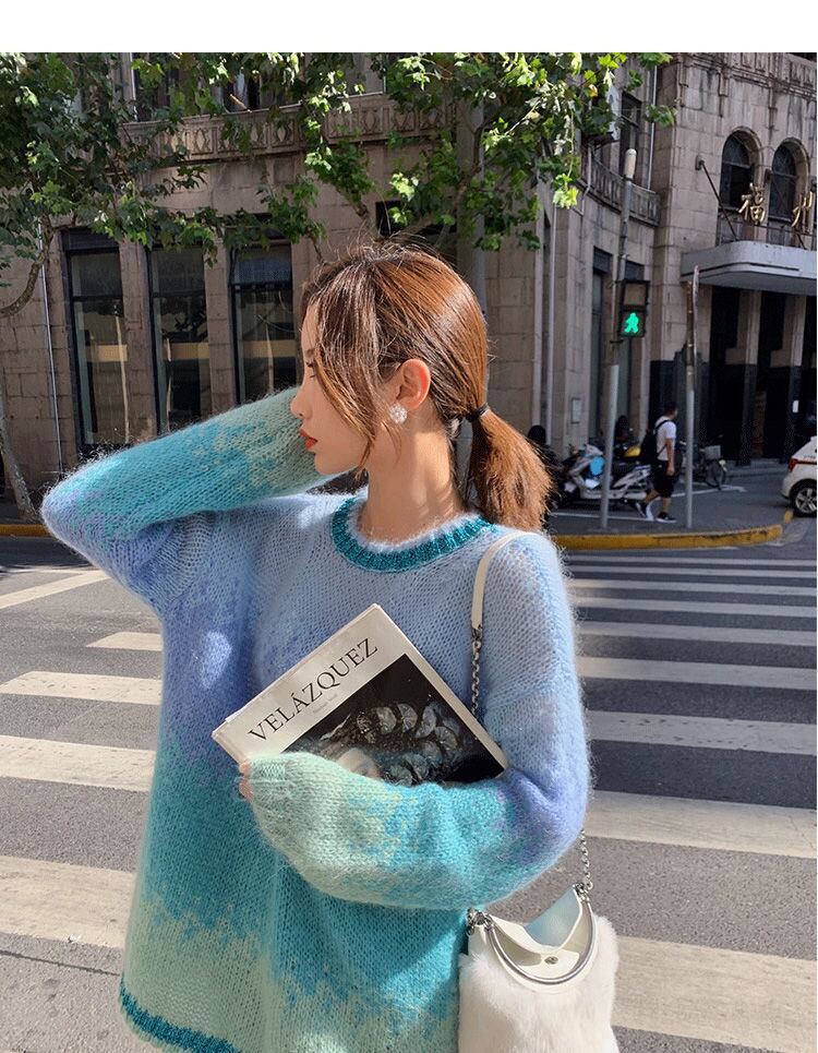 シックなセーターの女性スウィート 2021 秋ソフトミルクブルーグラデーションセーターモヘアウールトップファジーニットジャンパー 大人ガーリー キュート カジュアル オータム 秋物 bel87176902908 | aliel