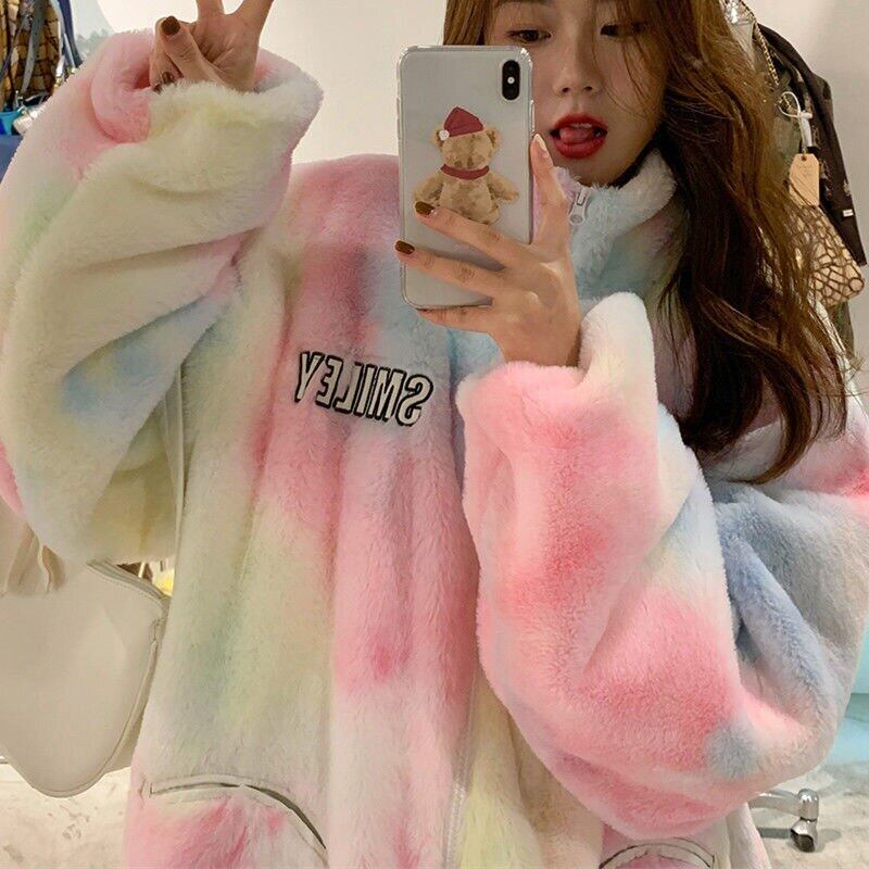 秋と冬のベルベットの厚手のフード付きラムウールコート女性のパッド入りジャケットルーズレインボーパッド入りコート毛皮のような暖かいパッド入りコート オータム 秋物 ウィンター 冬物 bel42248927121