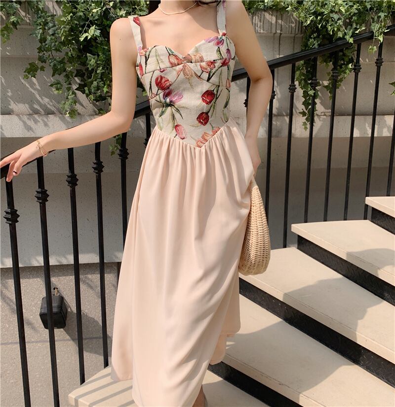 2022 チューリップジャカードパレスストラップマキシドレスオイルパンティングプリントホリデーキャミソールサマーフェアリードレスカクテルウエディングドレス レース 夏物 bel92677330130 | aliel