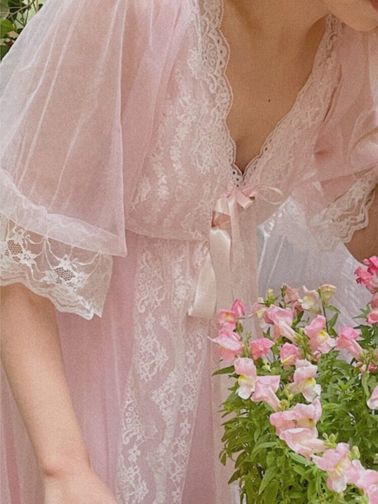 夏ピンクフランス妖精ドレス女性のレースのセクシーな甘いストラップドレス花シフォンロングドレス 2022 大人ガーリー スウィート キュート カジュアル サマー 夏物 フラワーデザイン bel84697013940