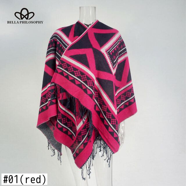 ベラ 哲学 部族 幾何学模様 フリンジ ニット カーディガン セーター スカーフ ショール ストリートウェア ポンチョ ケープ bel9312049418