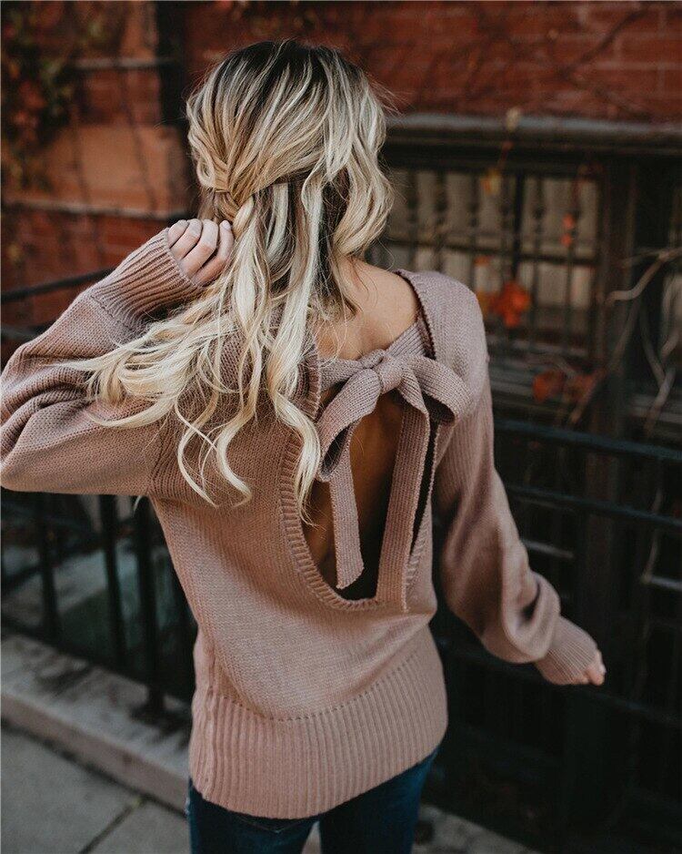 2018 ヨーロッパの冬服アメリカ eign 貿易セーター女性のセクシーな蝶ネクタイ編み上げセーター背中の開いたニット小帯 リボン レース ウィンター 冬物 ヨーロピアン bel3602198706