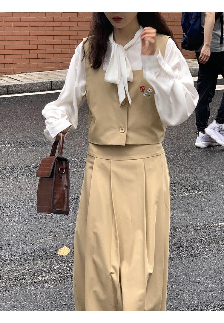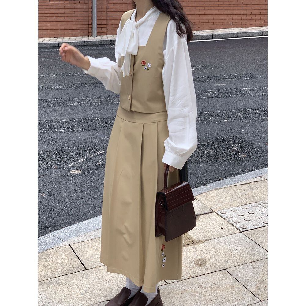 2021 春秋スーツシャツトップ + ベスト + ウエストプリーツスカートスリーピーススーツストリート 3 セット スプリング 春物 オータム 秋物 3セット bel21902712799 | aliel