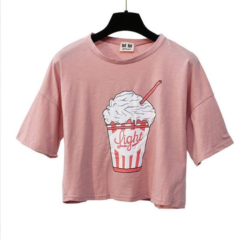 ベラ哲学夏秋原宿 Tシャツ女性の夏のアイスクリームコットンルーズ Tシャツクロップトップ Tシャツ かわいい サマー 夏物 オータム 秋物 bel60577520545