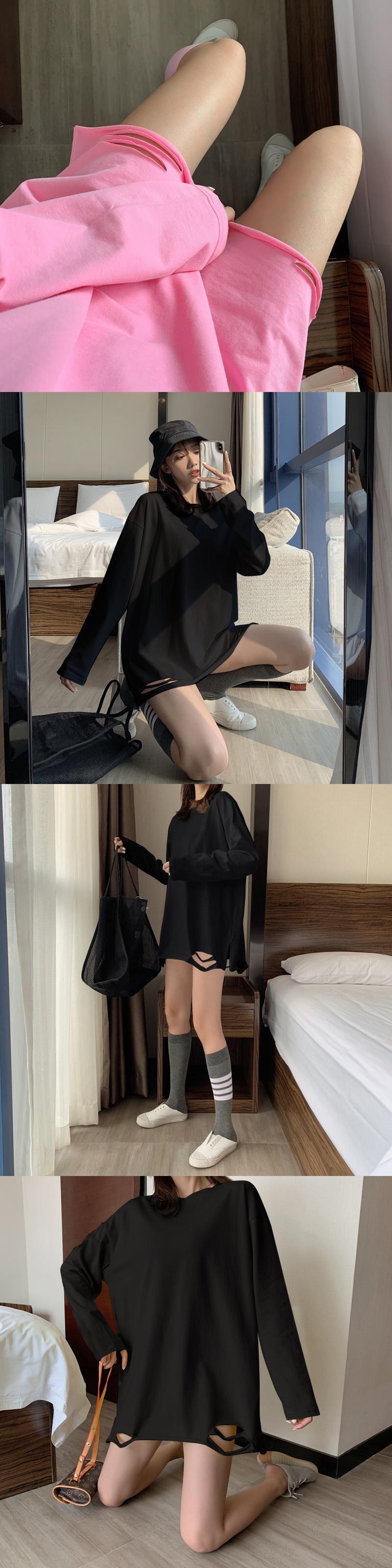 2020 固体春秋の穴女性長袖新鮮な Tシャツ緩い白黒服シンプルな基本的なプルオーバー ロング ホワイト ブラック スプリング 春物 オータム 秋物 ソリッドカラー bel80069899647 | aliel