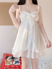 ナイトガウン女性スリープシャツレースセクシーな甘い弓夏シフォン通気性スパゲッティストラップソリッドウエストシックなレトロ リボン 大人ガーリー スウィート キュート カジュアル サマー 夏物 ソリッドカラー bel17716058015 | aliel