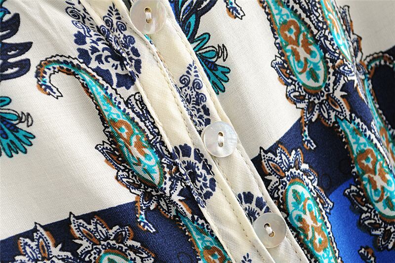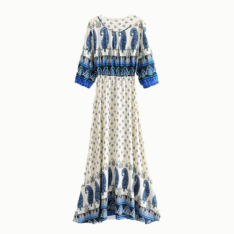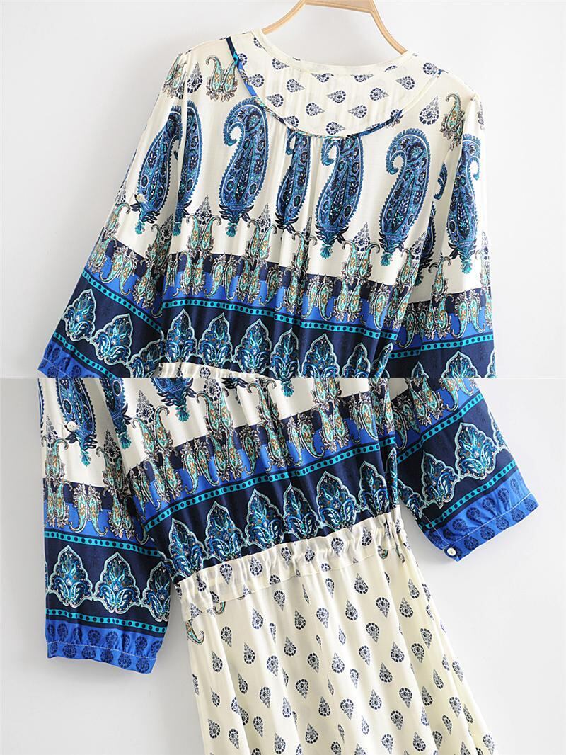 自由奔放に生きるシックな夏ペイズリー柄プリーツロングシャツドレス女性 2019 V ネックボタンマキシビーチドレス Vestidos サマー 夏物 Vネック bel36020891128 | aliel