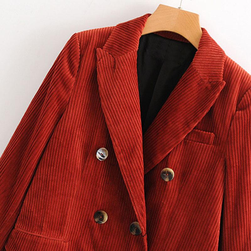 ベラ哲学 2018 秋の女性ウールコーデュロイコットンブレンドポケットスクエアカラーダブルブレストミディアムとロングセクション オータム 秋物 スクウェア bel18640314146