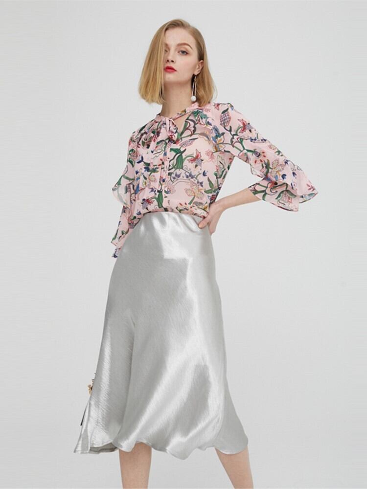Bella Philosophy Self Summer グロッシーサテントランペット ハイウエストスカート シルバーゴールド ロングスカート メタリックカラー パーティースカート ハイウェスト サマー 夏物 銀 bel30786939566 | aliel