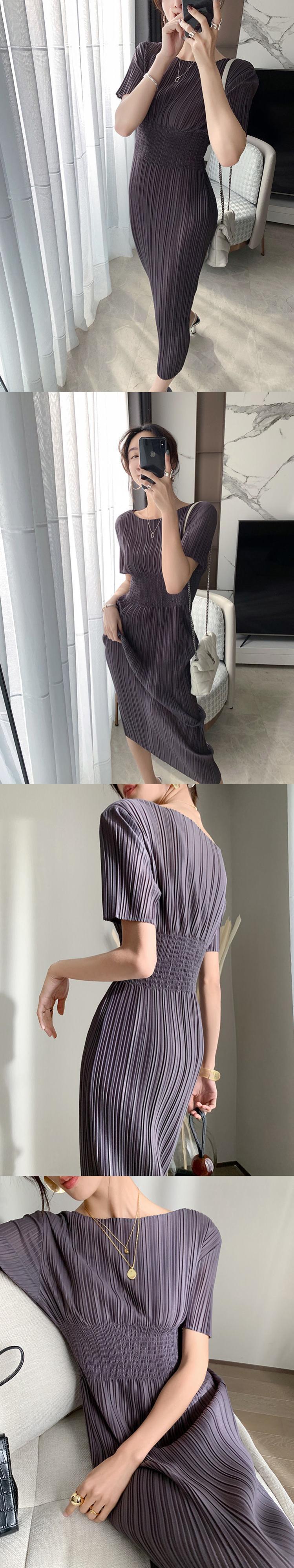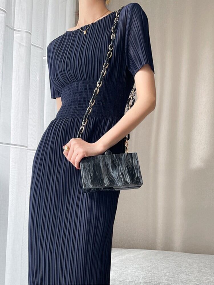 女性の夏のボディコン プリーツ ロング ドレス半袖ウエスト スリム パーティー ミディ Vestidos マキシ ドレス ショート ハーフスリーブ サマー 夏物 bel34181996189 | aliel