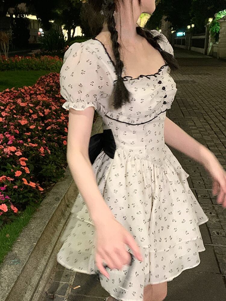Vestido corto femenino de verano con estampado Floral, minivestido francés de una pieza para mujer, e, con lazo エレガント 花柄 bel10446978462 | aliel