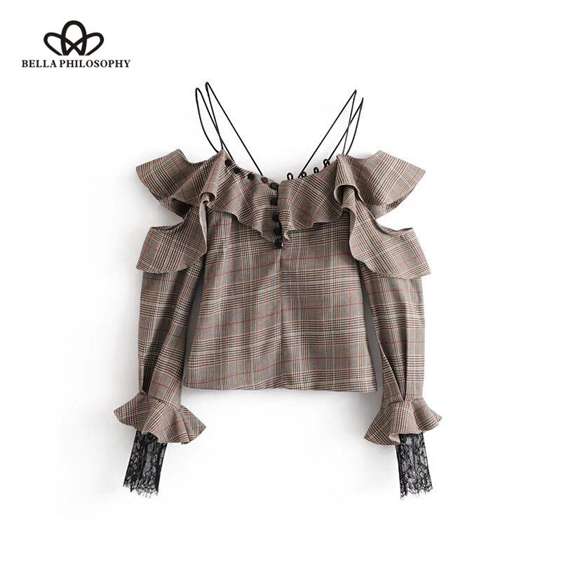 ベラ哲学春の新作女性チェック柄シャツボタンヴィンテージフラウンスショルダーストラップショートシャツファッションセクシーなシャツトップス スプリング 春物 ビンテージ bel5288127508 | aliel
