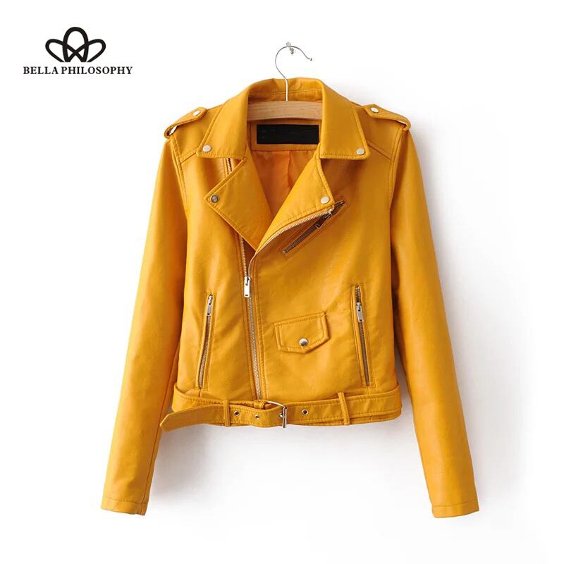 ベラ哲学女性秋冬フェイクレザージッパーバイカージャケット女性カジュアルサッシ PU ジャケットコートレディースコート オータム 秋物 ウィンター 冬物 ファー bel90282915381 | aliel