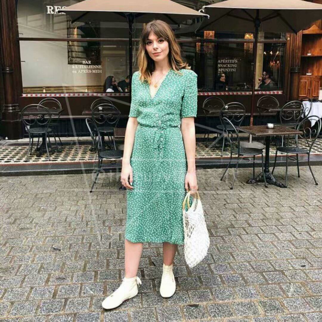 Bella Philosophy V ネック ラップ ハイ ウエスト ロング女性ドレス半袖スプリット ミディ ドレス セクシーなタイアップ プリント ドレス ビーチ ハイウェスト ショート ハーフスリーブ Vネック bel13715117365 | aliel