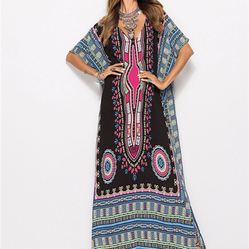 Bella Philosophy サマー ロング プリント ドレス アフリカン トラディショナル インディー フォーク ドレス ハーフ&アンクルレングス Oネック マキシドレス 夏物 bel92369944245