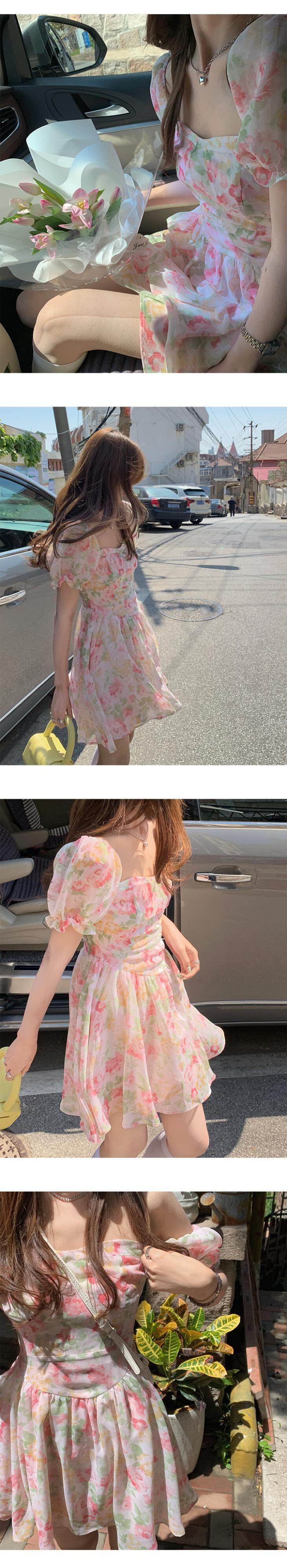 花柄ハーフスリーブ夏の女性ドレススクエアカラーフランス Fariy マキシドレスホリデー自由奔放に生きる Vestidos 半袖 サマー 夏物 スクウェア bel92822991830 | aliel