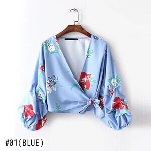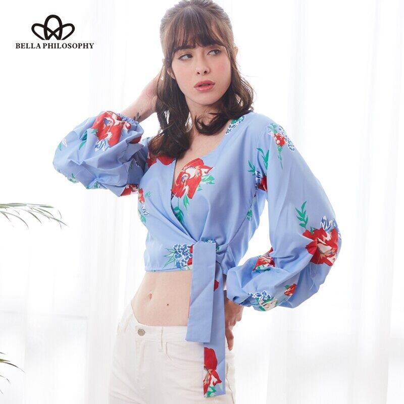 ベラ哲学春女性ショートスタイルブラウスフルパフスリーブレディース V ネックシャツプリント弓レディース着物 blusas リボン スプリング 春物 Vネック bel80146247766 | aliel