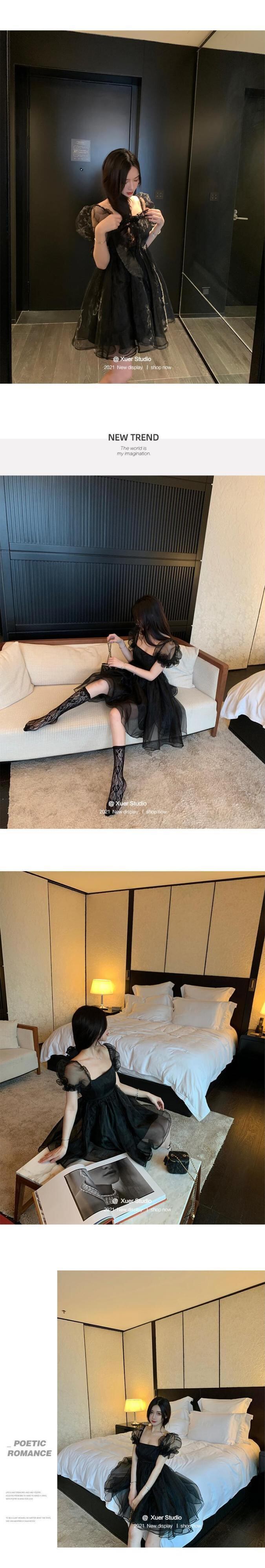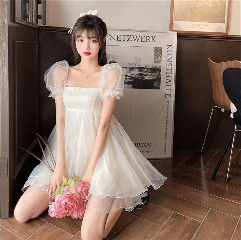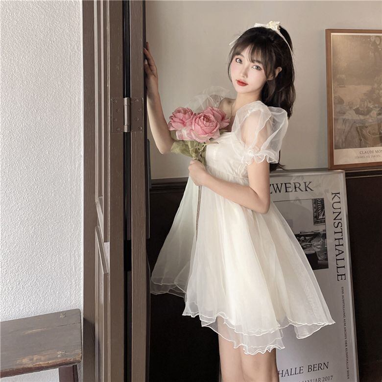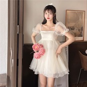 夏のセクシーなパーティードレス女性フレンチスタイルの甘いミニドレスパフスリーブオフィスドレスの女性 大人ガーリー スウィート キュート カジュアル サマー 夏物 会社 学校 通勤や通学にも bel27796806175 | aliel