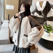 秋冬 2021 暖かいフェイクレックスウサギの毛皮のコートの女性スプライシングコート両面毛皮のジャケット фурри オータム 秋物 ウィンター 冬物 ファー bel39239862826 | aliel