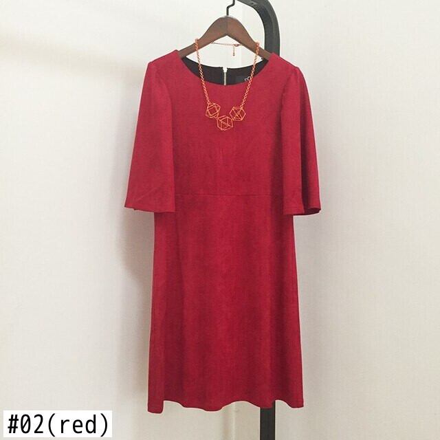 ベラ哲学春秋ロータス蝶スリーブ ドレス ジップ両面フェイクスエード ダーク グリーン赤女性ドレス レッド スウェード スプリング 春物 オータム 秋物 ファー bel16299408196 | aliel