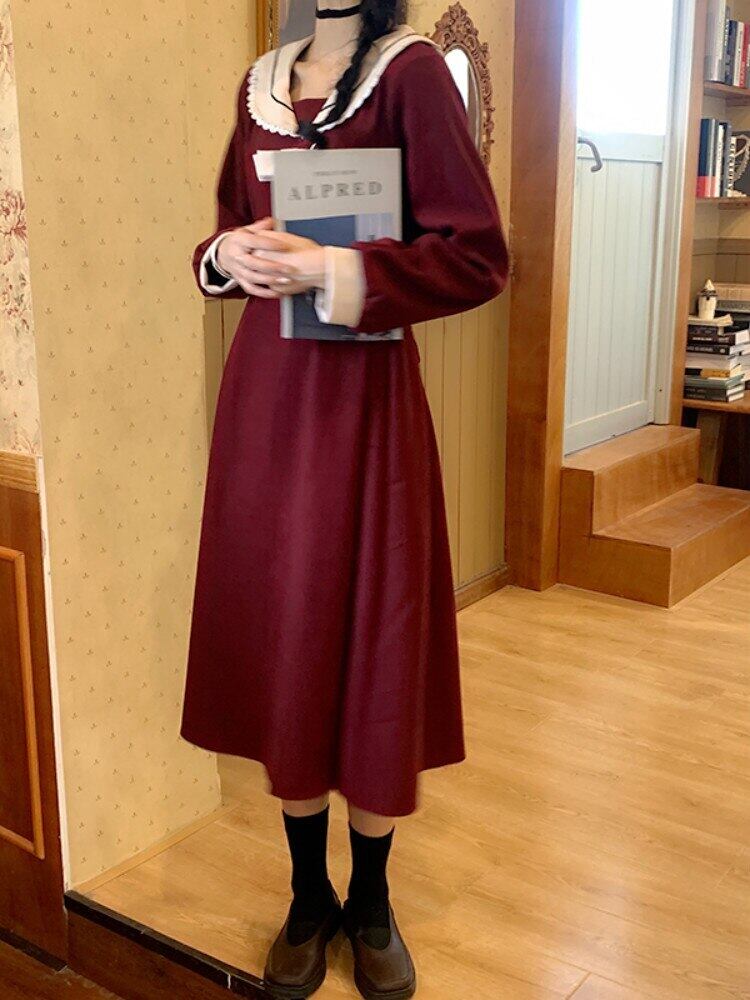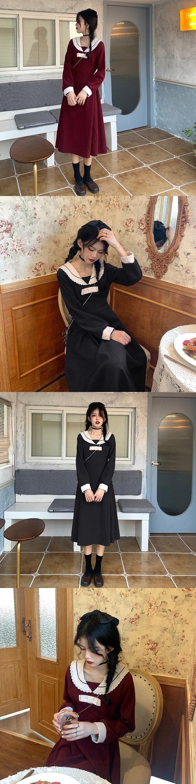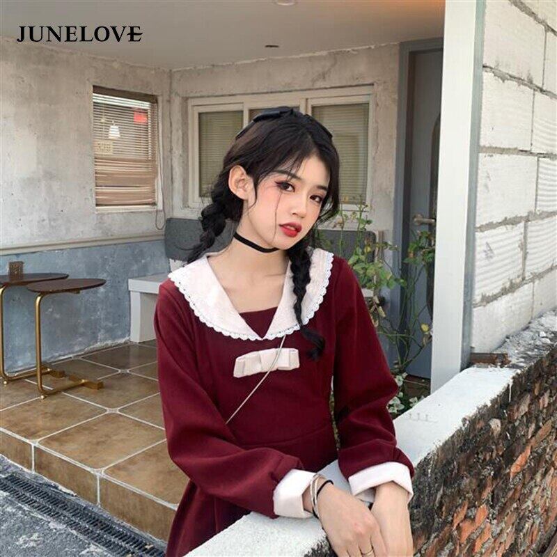 ドレス女性の冬のパーティードレスストリート ese スタイル甘い弓 A ラインミディ Vestidos リボン 大人ガーリー スウィート キュート カジュアル ウィンター 冬物 Aライン bel21892794765 | aliel