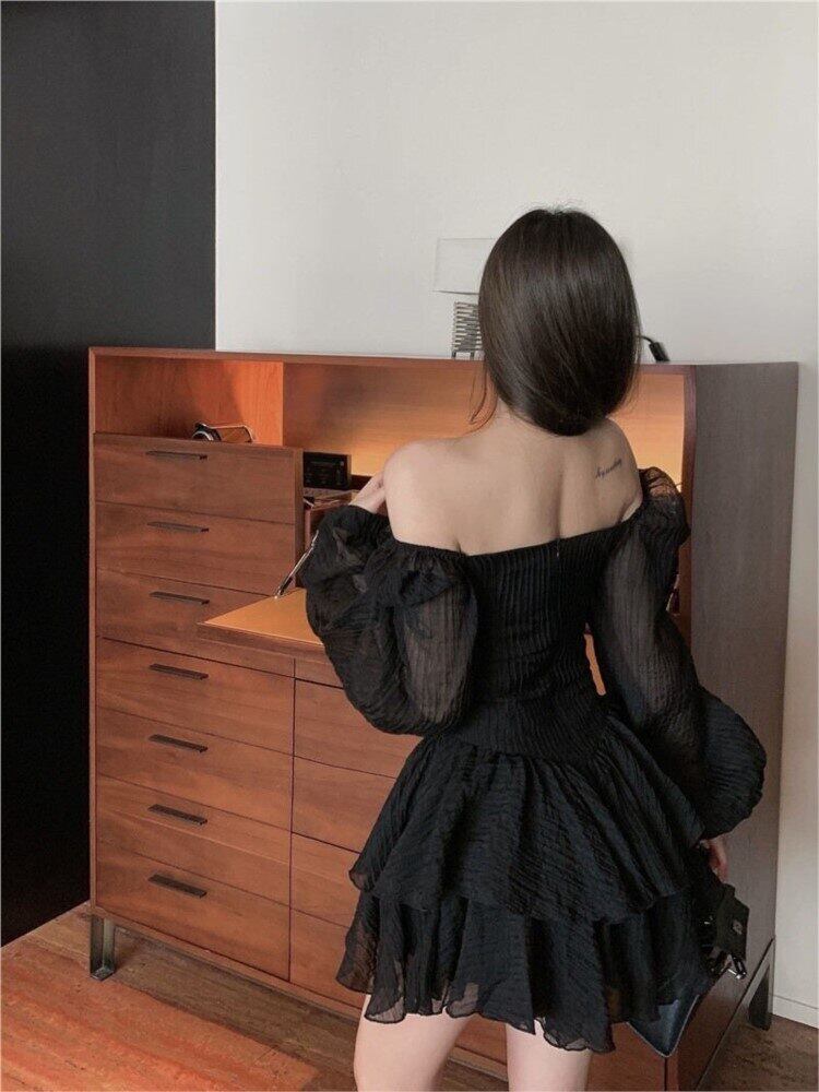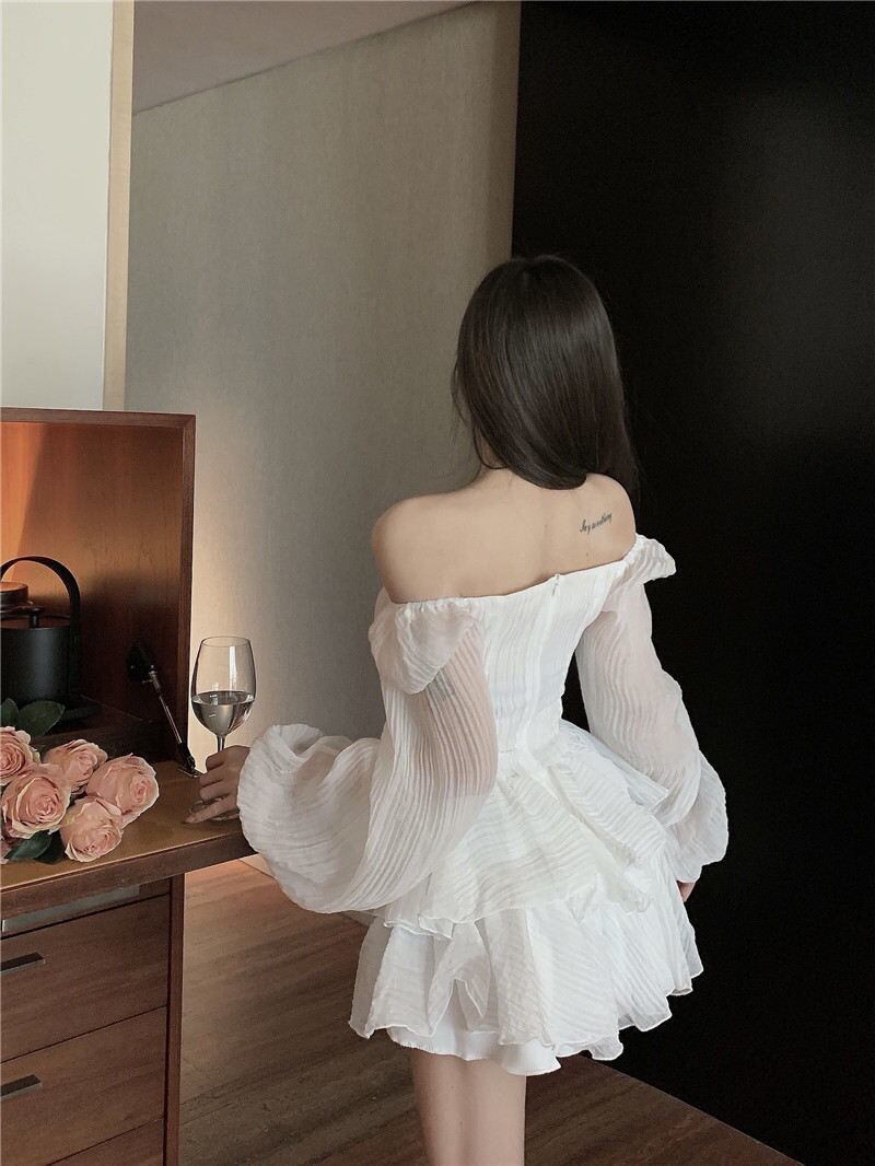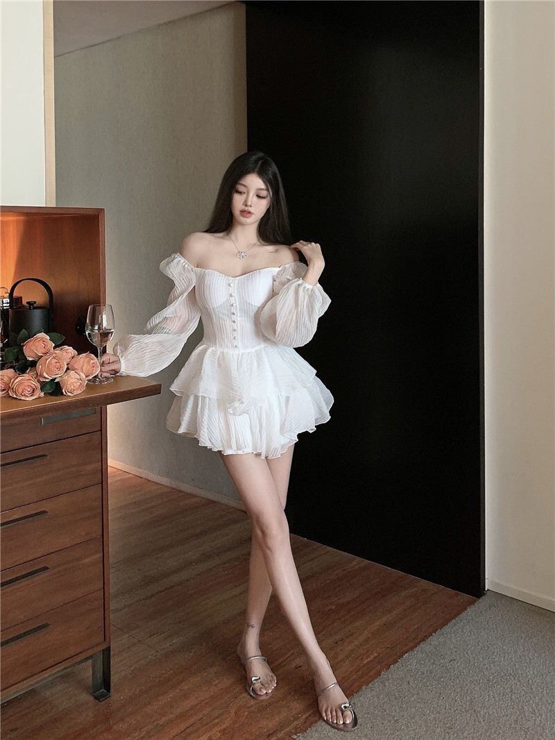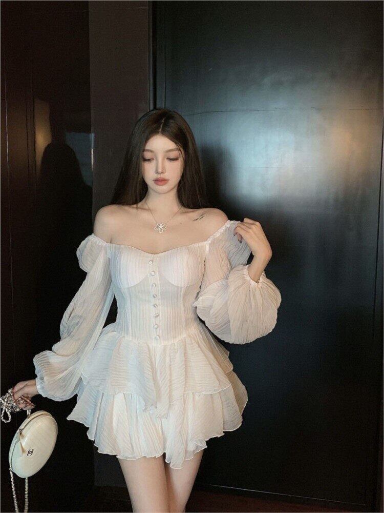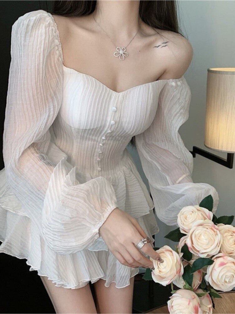 女性ドレス Simplee 無地スクエアカラーパフスリーブウエスト二重層 2022 春 A ラインミニドレス スプリング 春物 Aライン ソリッドカラー スクウェア bel78934099512 | aliel