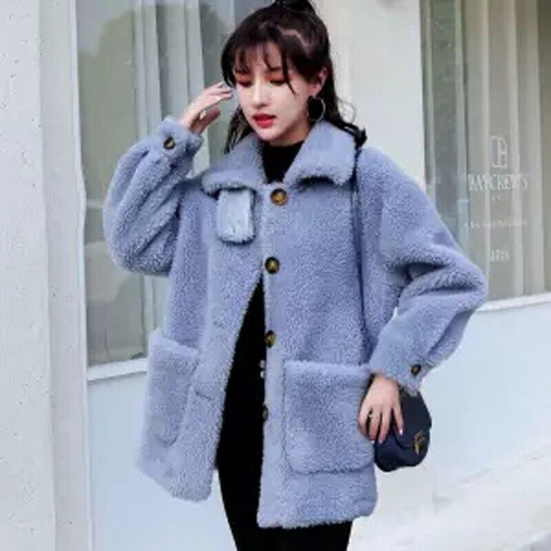 ベラ哲学 2019 冬の羊の毛刈り毛皮のジャケットの女性白粒状ウール厚み暖かい Outwears ルーズポケットコート ホワイト ウィンター 冬物 bel39693815643