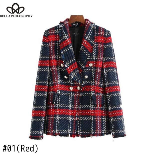 Bella Philosophy 2019 春長袖チェック柄ツイード女性ブレザーポケットフリンジ Tel コートボタン装飾上着 ロング スプリング 春物 bel98881074333