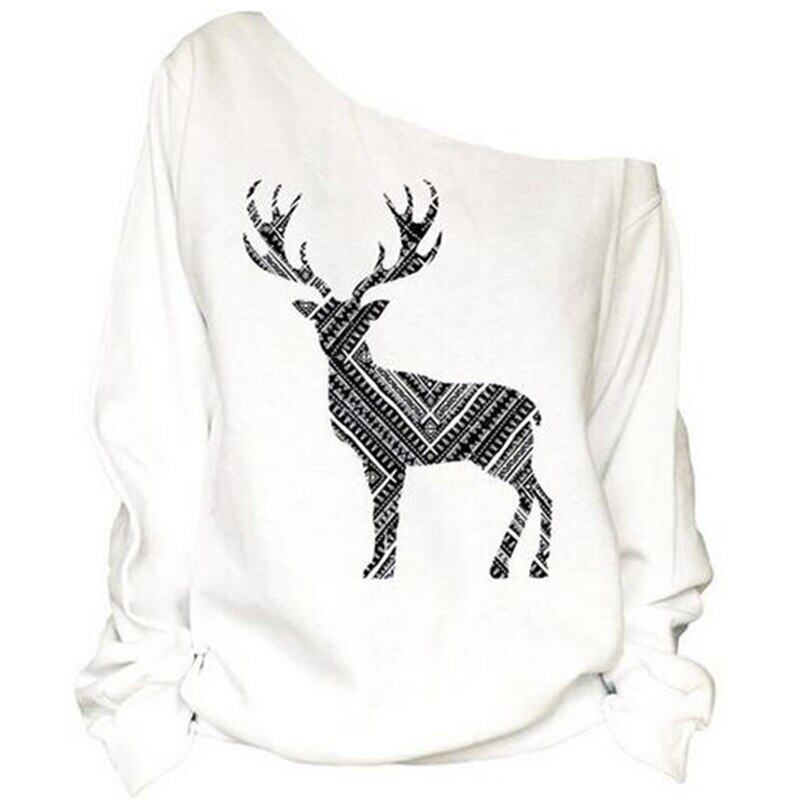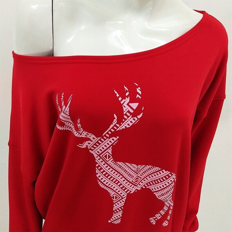 ベラ哲学 2018 冬の女性のカジュアルプルオーバースラッシュネックセクシーなプルオーバークリスマステーマプリント長袖セーターシャツ ロング ウィンター 冬物 bel29030513168 | aliel