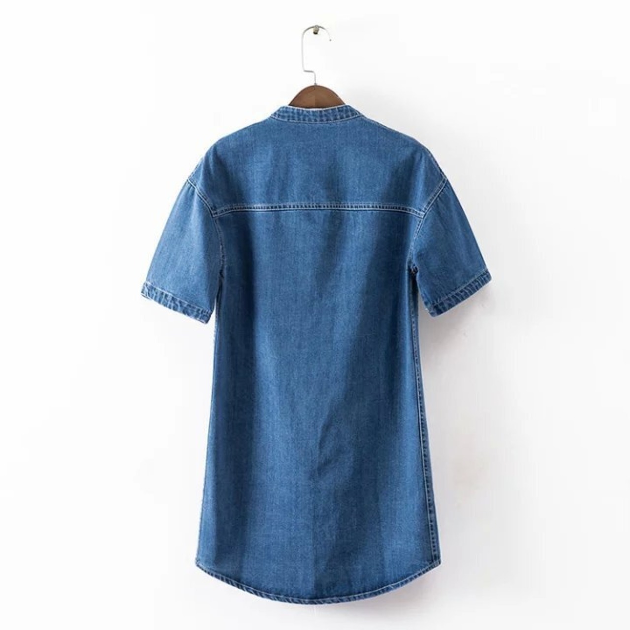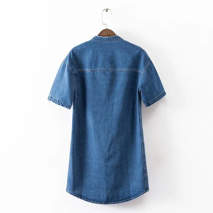 春夏新ファッションヨーロッパとアメリカのスタンドアップカラー半袖ポケットデニムブルー女性ドレス ショート ハーフスリーブ スプリング 春物 サマー 夏物 ヨーロピアン bel48486558599 | aliel