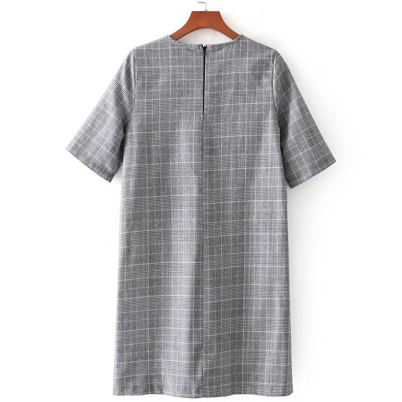 Bella Philosophy 2018 女性因果グレーチェック柄ミニストレートドレス半袖 o ネックドレスサイドストライプスリム女性ドレス ショート ハーフスリーブ Oネック bel94488258040 | aliel