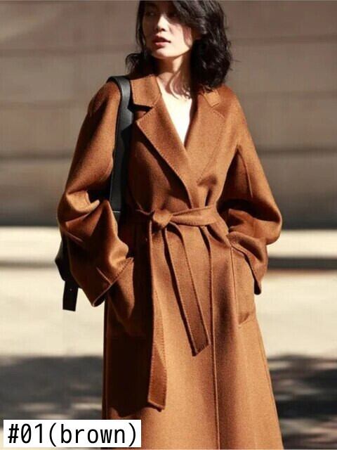 2022 女性の冬の固体オーバーコートオフィスレディサッシュウールコートポケット暖かいコート Outerwears ウィンター 冬物 ソリッドカラー 会社 学校 通勤や通学にも bel31940558348 | aliel