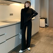 2021 秋冬 2 個セット女性ソリッドプルオーバーセータースーツウエストニットパンツニットソフトスーツスタイル オータム 秋物 ウィンター 冬物 ソリッドカラー bel71618407775 | aliel