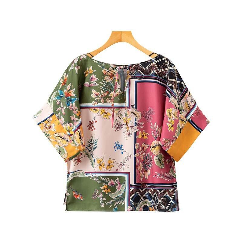 Bella Philosophy フローラル パッチワーク プリント ルーズ ブラウス 着物スタイル O ネック 半袖 シャツ 女性 ストリートウェア オーバーサイズ トップス ショート ハーフスリーブ 花柄 Oネック bel89784269766 | aliel