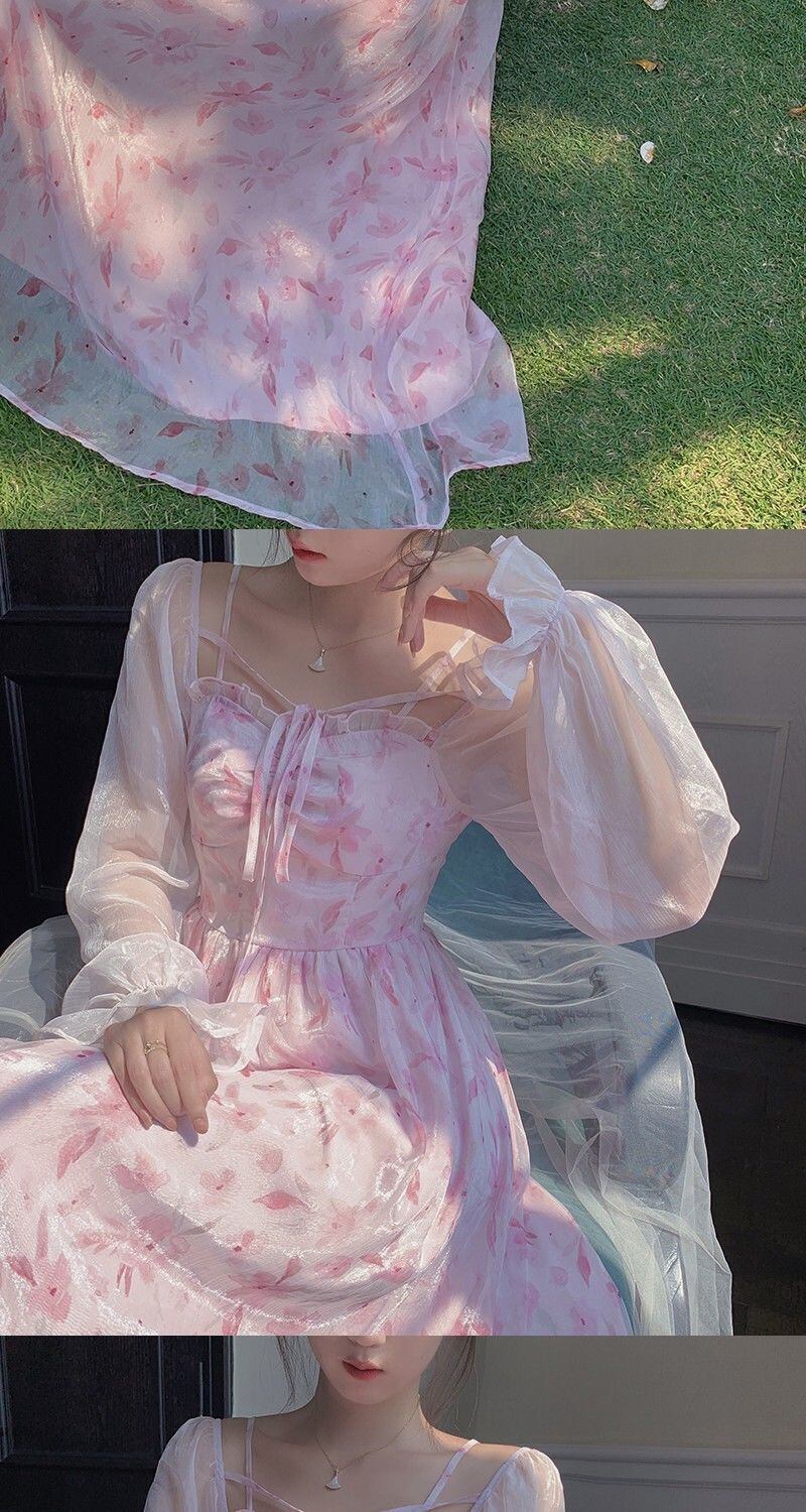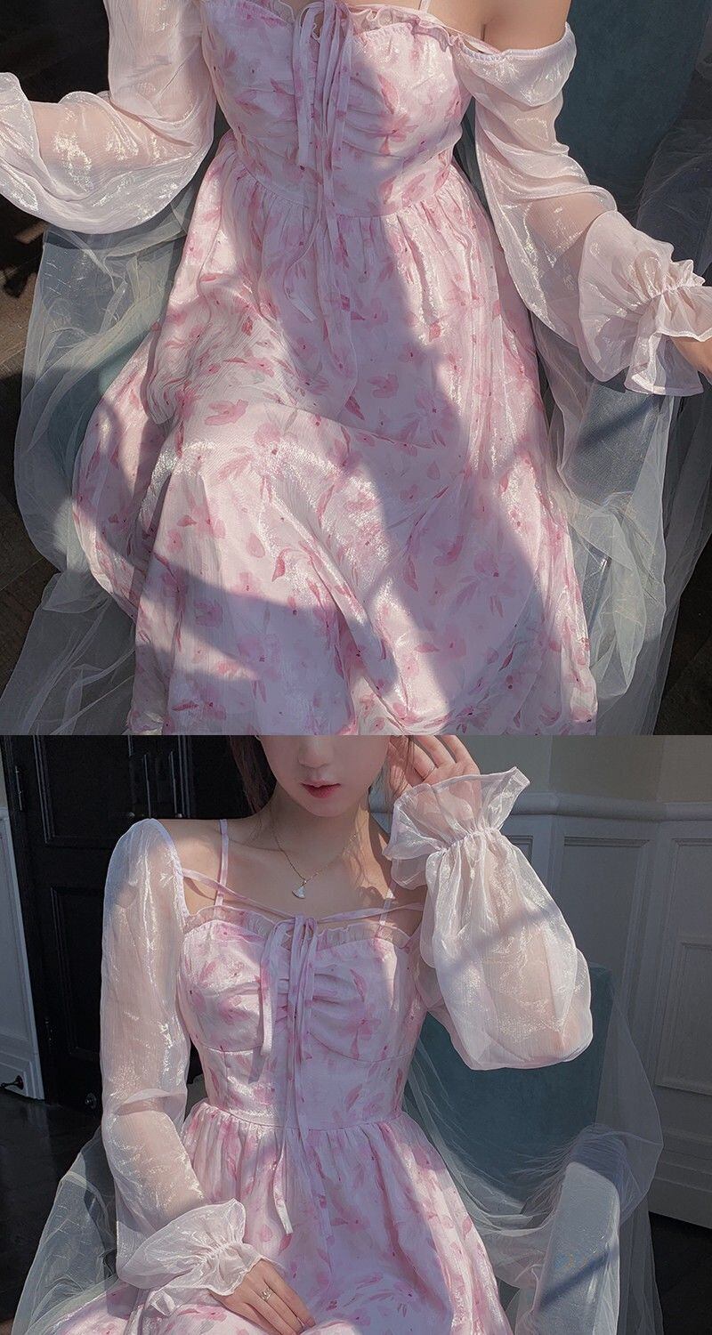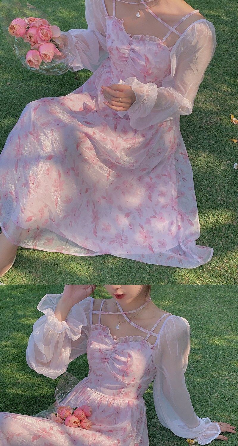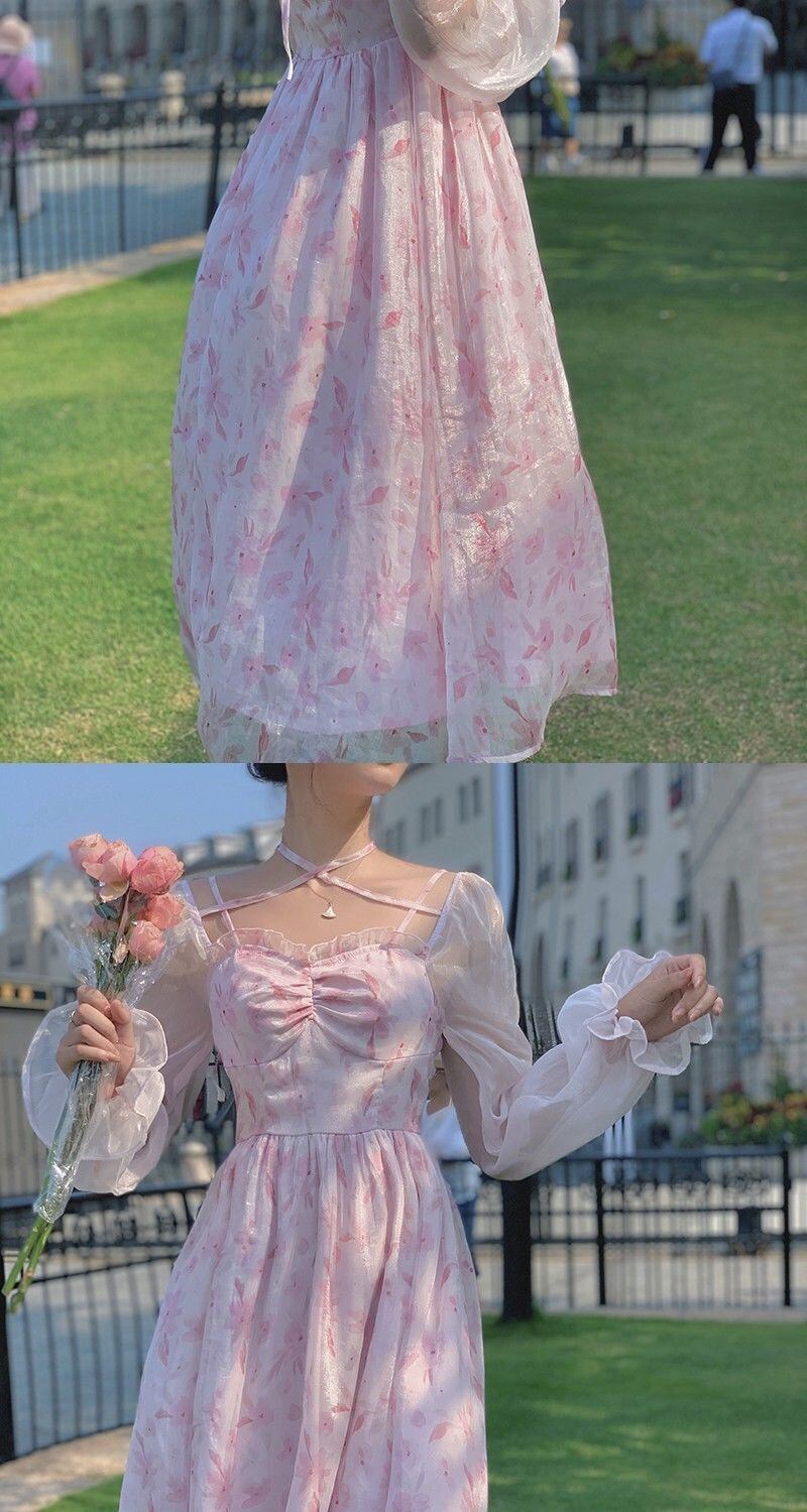 フローラル パーティー ミディ ドレス女性 2021 ピンク プリント夏フリル甘いフレンチ ボヘミアン ビーチ ドレス 大人ガーリー スウィート キュート カジュアル サマー 夏物 花柄 bel17745252909 | aliel