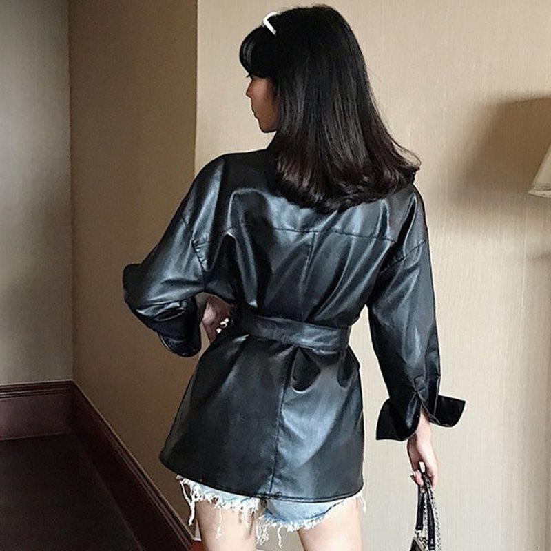 ベラ哲学秋オートバイ Pu レザージャケット女性サッシレザーコートベルト付き生き抜くグランジスタイルストリートボンバージャケット オータム 秋物 ハーネス bel84470504717 | aliel