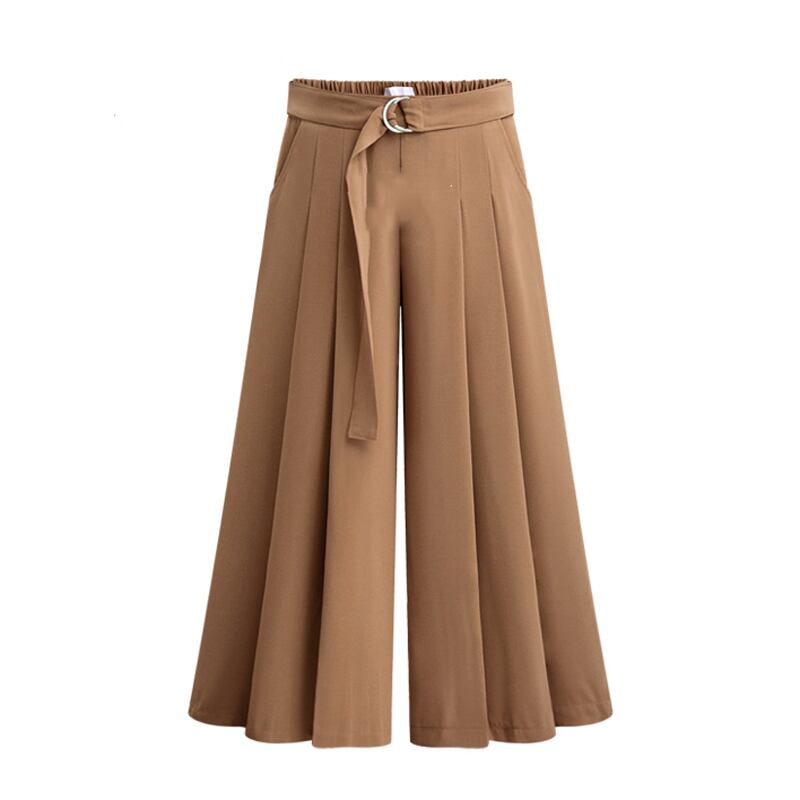 ベラ哲学 2019 春エレガントなソリッドルース因果女性パンツプリーツワイドレッグパンツプラスサイズサッシズボン 大きめサイズ スプリング 春物 ワイドパンツ ソリッドカラー bel44717186254