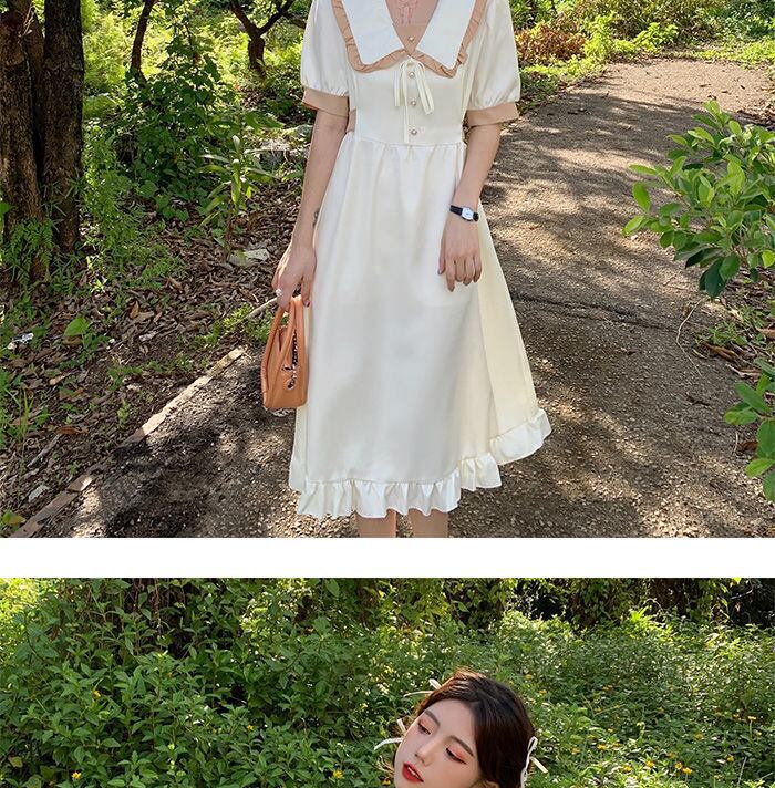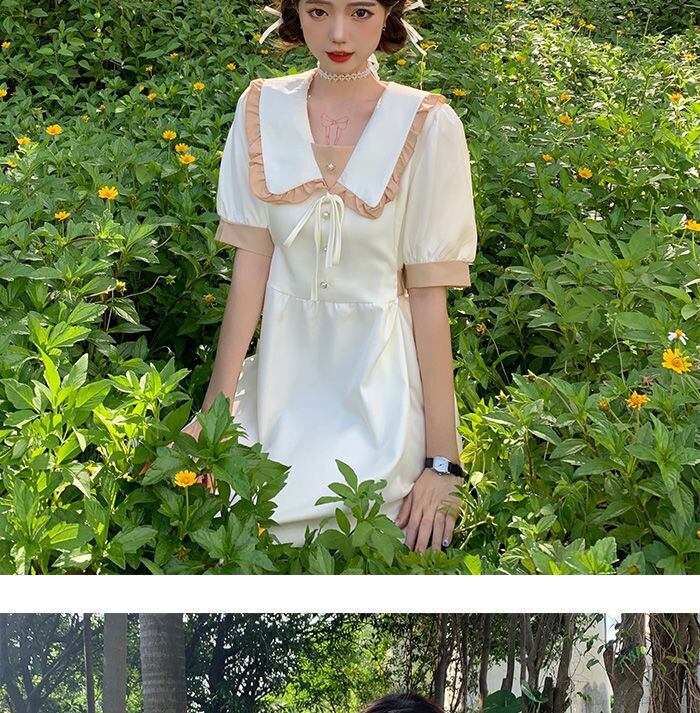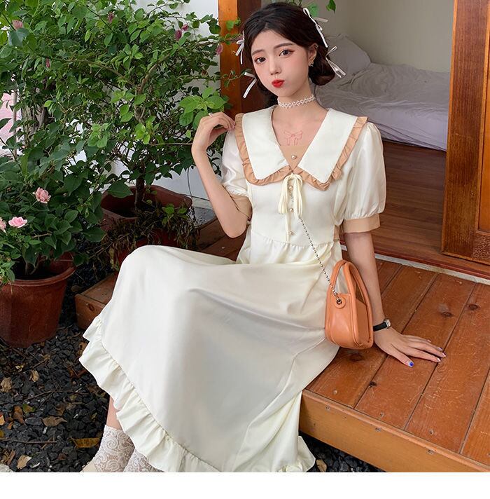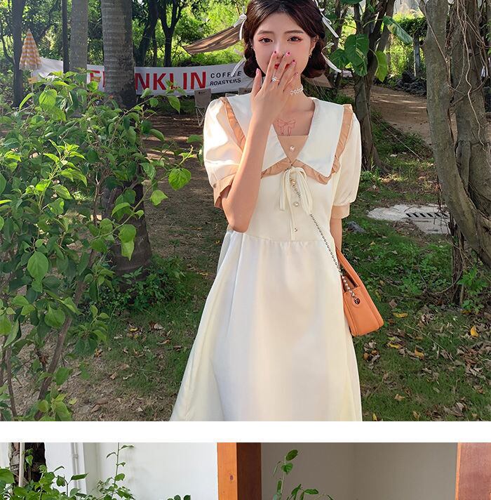 2022 女性の夏の a ラインドレス Femlae ピーターパン襟フリルドレス女性パフスリーブレースアップホリデー Vestido サマー 夏物 Aライン bel65722323602 | aliel