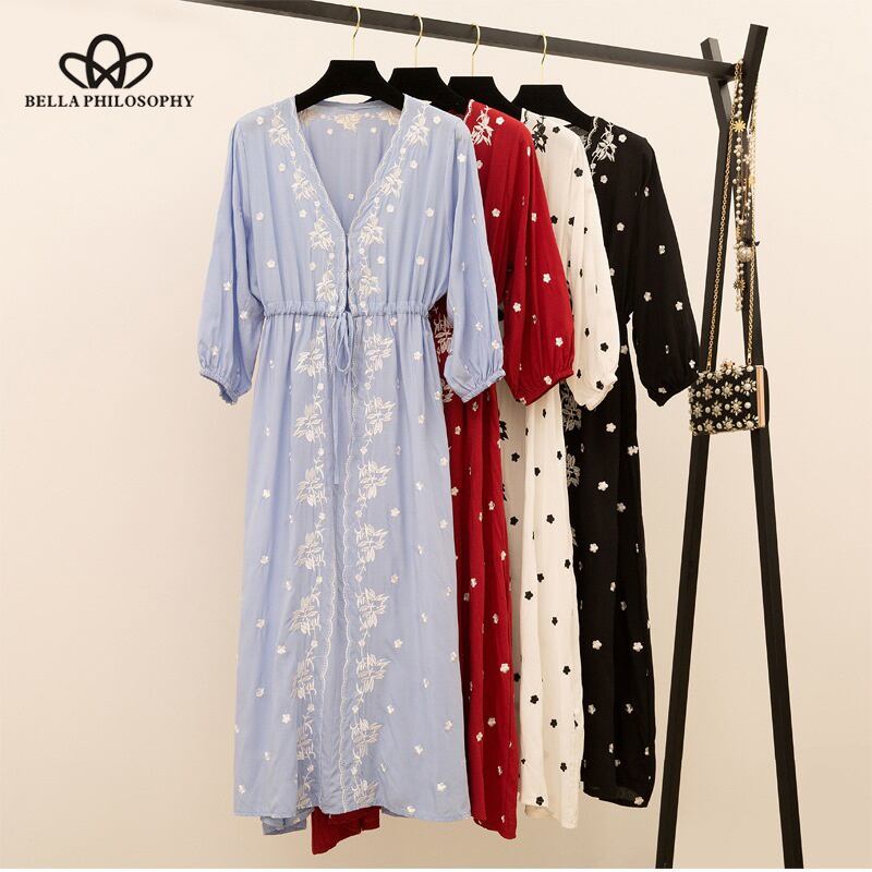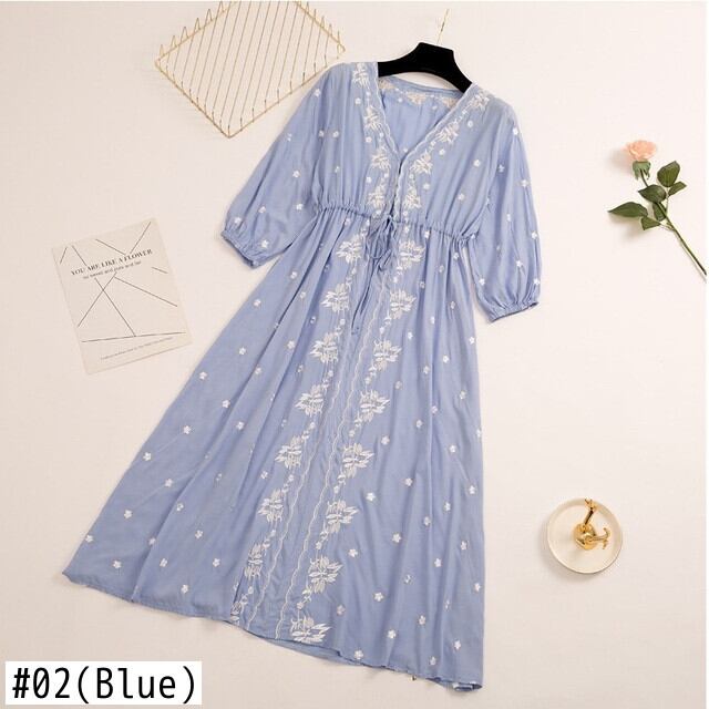 刺繍花ミディドレス水着 2019 コットンスリムチュニックカフタンビーチドレス gravida 夏自由奔放に生きるドレス サマー 夏物 花柄 bel2614195439