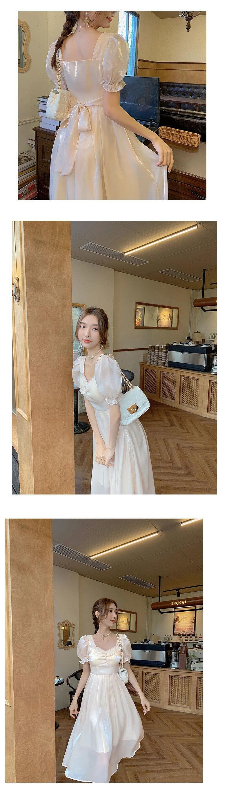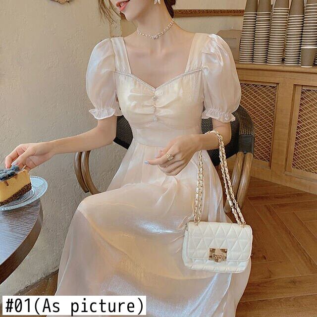 半袖ドレス女性スクエアカラーシフォン Vingate ドレスパーティードレススタイル 2021 夏の妖精 ショート ハーフスリーブ サマー 夏物 スクウェア bel10199053400 | aliel
