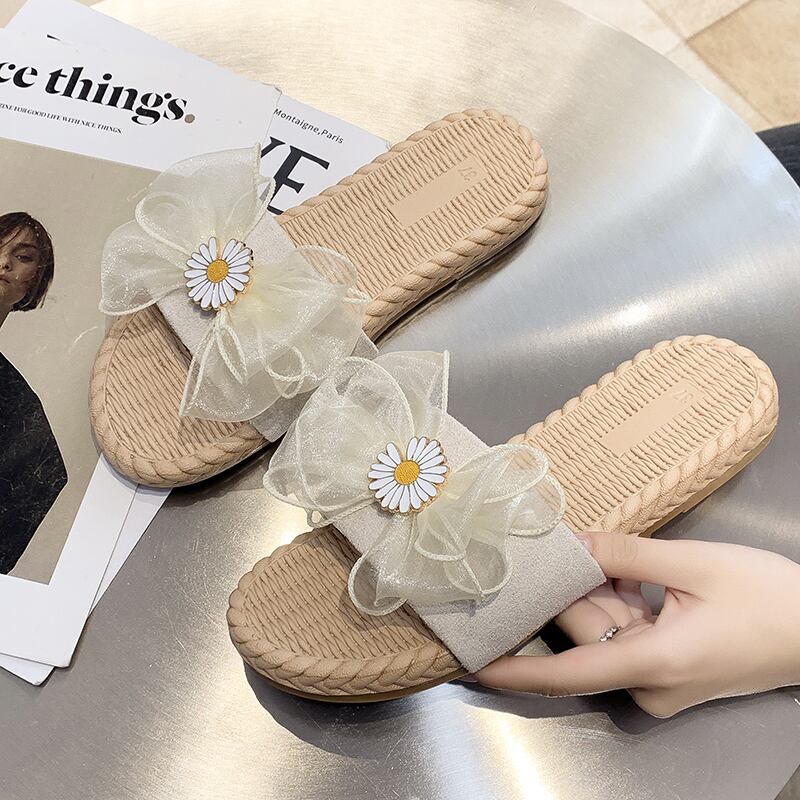 2020 女性の甘いスリッパ夏スライド花オープントゥフラットシューズサンダル屋外ビーチフリップフロップ底 靴 ミュール 大人ガーリー スウィート キュート カジュアル サマー 夏物 フラワーデザイン bel58634286363 | aliel