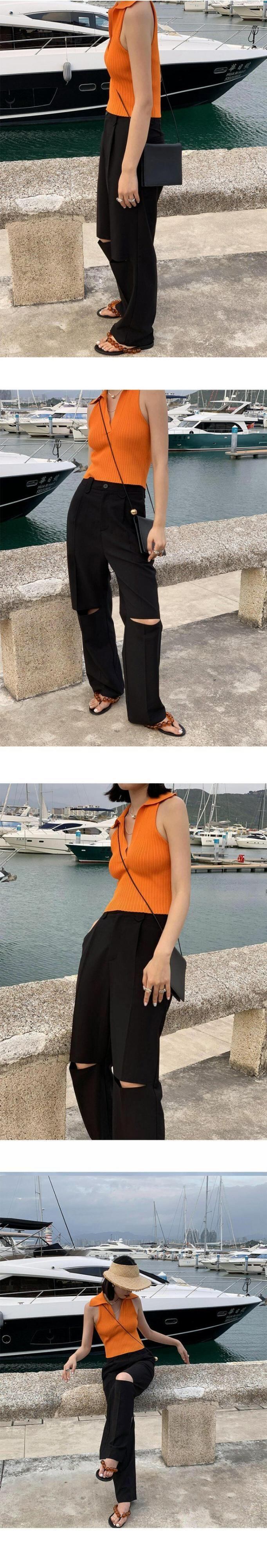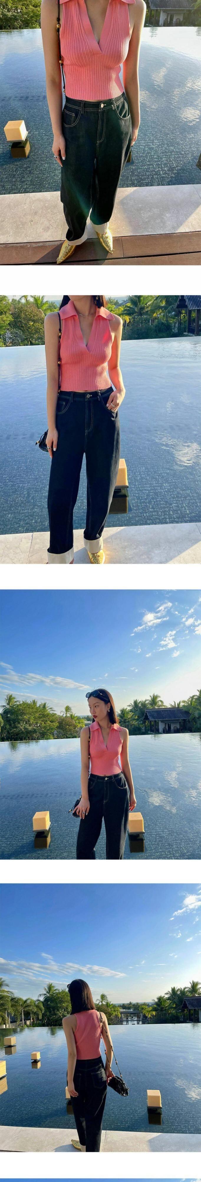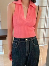 ヨーロッパとアメリカのポロ襟小さなセクシーな深い V ラペル ノースリーブ セーター ベスト女性春スリム底入れトップ スプリング 春物 ヨーロピアン bel43604858369