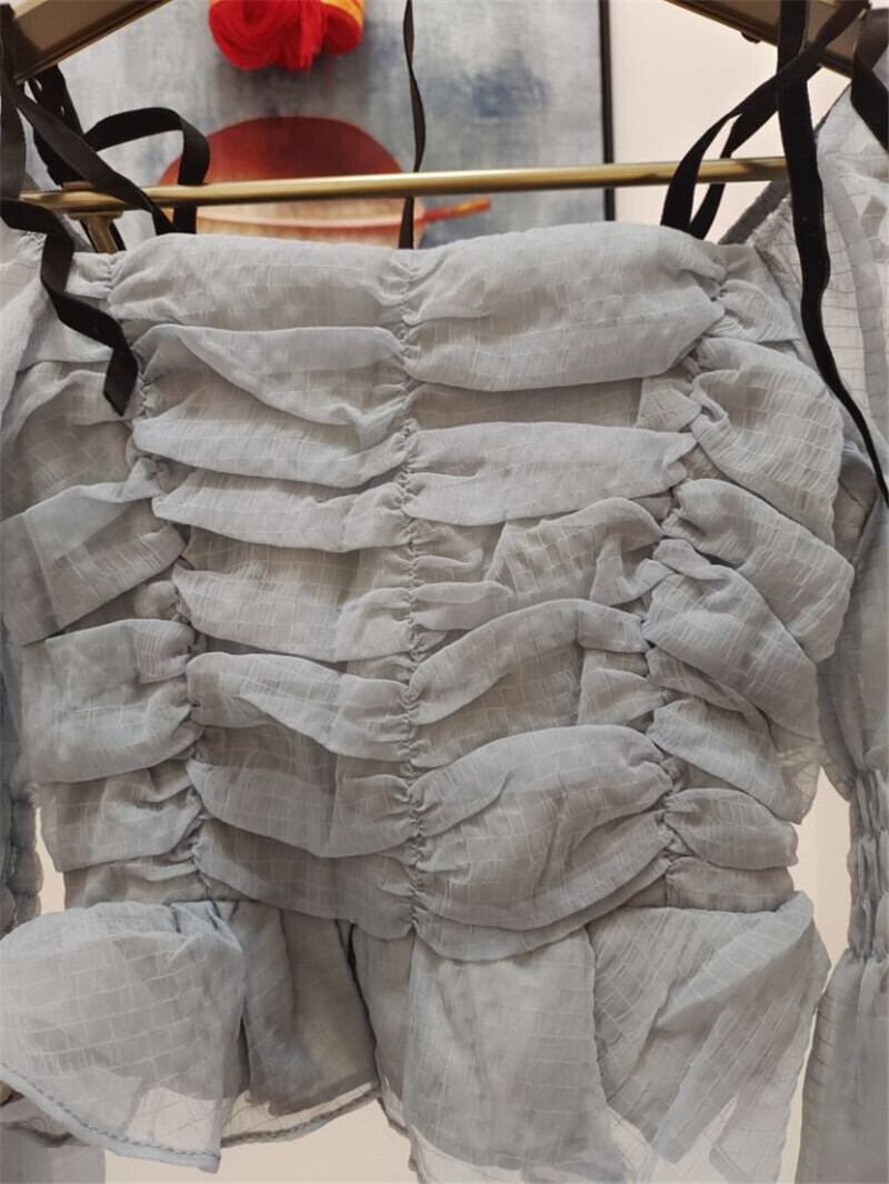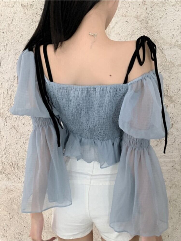 2022フレンチスイートスクエアカラーシフォンブラウスフレアスリーブオフショルダースラッシュネックフリル長袖シフォントップス ロング レッド 大人ガーリー スウィート キュート カジュアル スクウェア bel67505090303 | aliel
