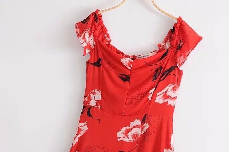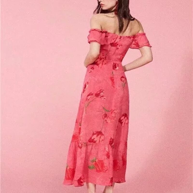 Bella Philosophy 2018 春 カジュアル ビーチ 花柄 プリント ドレス オフショルダー ハイウエスト ドレス スラッシュネック ミッドカーフ Aライン ドレス ハイウェスト スプリング 春物 bel81253175789 | aliel